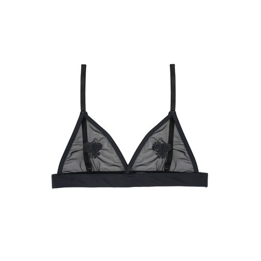 Scilla-BH mit Mikroblumenapplikationen aus schwarzer Makramee-Spitze